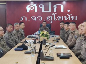 วันที่ 17 เม.ย.67 เวลา 11.00 น. พล.ต.ต.วรวัฒน์ มะลิ รอง ผบช ภ.6 ประธาน พ.ต.อ.กำลาภ โตทองสุข รอง ผบก.ภ.จว.สุโขทัย พร้อมหน.สภ.ในสังกัด ภ.จว.สุโขทัย และ เจ้าหน้าที่เวร ศปก.ภ.จว.สุโขทัย ประชุม ศูนย์อำนวยการป้องกันและลดอุบัติเหตุทางถนนช่วงเทศกาลสงกรานต์ พ.ศ.2567 ด้วยระบบประชุมทางไกลผ่านจอภาพ (Video Conference) กับ ศปก.ตร., ศปก.ภ.6, ศปก.ภ.จว.ในสังกัด ภ.6, ศปก.สภ.ในสังกัด เฝ้าฟังที่ตั้งหน่วย ณ ห้องประชุม 2 ภ.จว.สุโขทัย