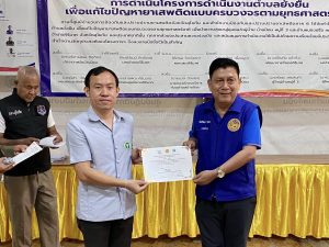วันที่ 13 ส.ค.2568 เวลา 09.30 น.พ.ต.อ.ภัคพล ไกรวิลาศ ผกก.สภ.คีรีมาศ ,พ.ต.ท.คมกฤช แก้วชื่น รอง ผกก.ป.สภ.คีรีมาศ พร้อมด้วยชุดปฏิบัติการชุมชนยั่งยืนสภ.คีรีมาศ ,รพ.สต.บ้านป้อม ,กำนัน ,เจ้าหน้าที่ รพ.คีรีมาศ,ผู้ใหญ่บ้าน/ผู้ช่วย และ อสม. ร่วมพิธีปิดโครงการดำเนินงานตำบลยั่งยืน เพื่อแก้ไขปัญหายาเสพติดแบบครบวงจรตามยุทธศาสตร์ชาติโดยมี ว่าที่ร้อยตรี กิตติวัฒน์ กิตติเวช นายอำเภอคีรีมาศ เป็นประธาน ณ ศาลาวัดบ้านป้อม อ.คีรีมาศ จ.สุโขทัย