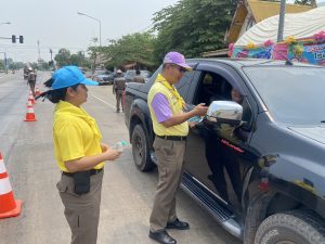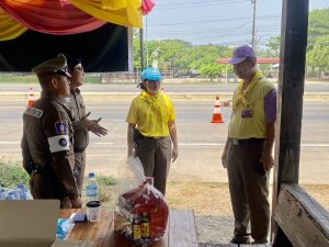 พ.ต.อ.กำลาภ โตทองสุข รอง ผบก.ภ.จว.สุโขทัย และ พ.ต.ต.หญิงมนัสวี ศรีอรุณนิรันดร์ สว.อก.สภ.คีรีมาศ นำข้าราชการตำรวจจิตอาสา 10 นาย และส่วนราชการ สังกัด อำเภอคีรีมาศ ,ฝ่ายปกครอง ,สาธารณสุข ฯลฯ ประชาสัมพันธ์ ลดอุบัติเหตุทางท้องถนน พร้อมแจกผ้าเย็นและน้ำดื่มฯ เพื่อป้องกัน และลดอุบัติเหตุทางถนนช่วงเทศกาลสงกรานต์ 2567 ณ ด่านตรวจภูหลวง(ถนนหมายเลข101) ม.1 ตำบลโตนด อำเภอคีรีมาศ จังหวัดสุโขทัย